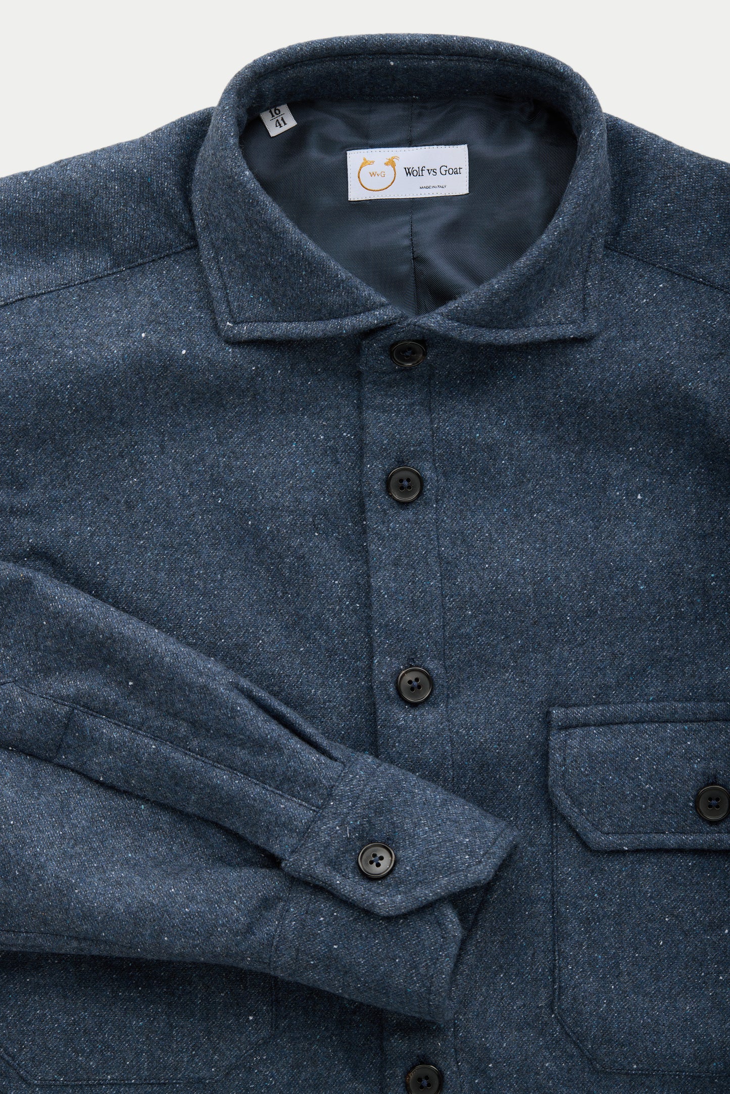 Crafted in Italy from a luxurious Botto Giuseppe blend of 79% wool, 10% cashmere, 10% silk, and 1% PA, this jacket delivers a refined balance of softness, structure, and quiet elegance. Real horn buttons, viscose lining, and single-needle construction underscore its quality, while the manica spostata sleeve offers an elevated, more natural drape. Finished with two clean patch pockets and made entirely in Italy, it’s a piece built for years of wear. Dry clean only.